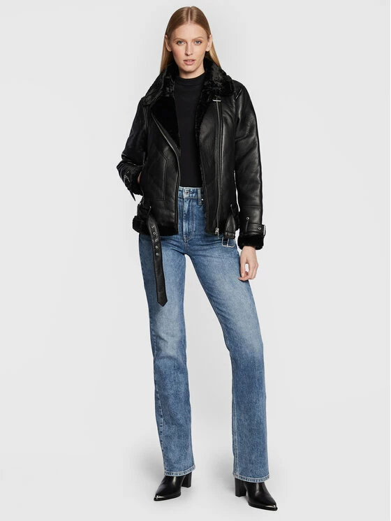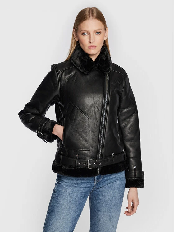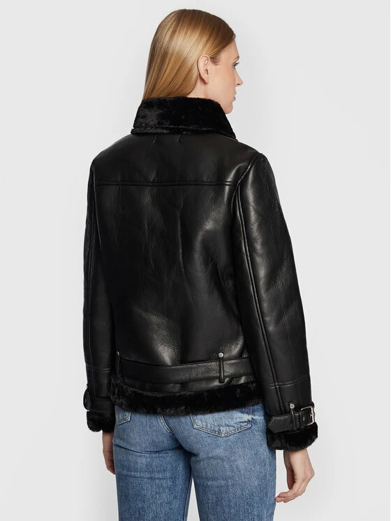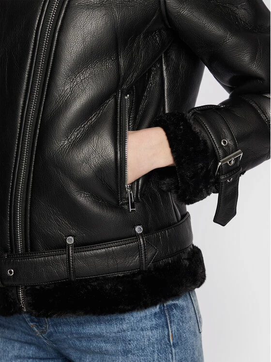 Morgan Γυναίκες Δερμάτινα Μπουφάν Μπουφάν από απομίμηση δέρματος 222-GEREMI Μαύρο Regular Fit
