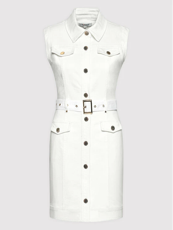 Morgan Γυναίκες Φορέματα σε Στυλ Πουκάμισο & Σεμιζιέ Φόρεμα τζιν 221-ROUKY1 Λευκό Regular Fit